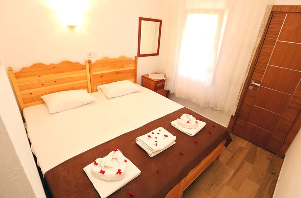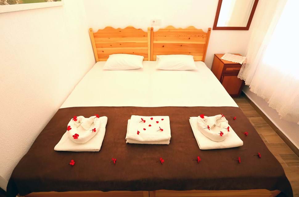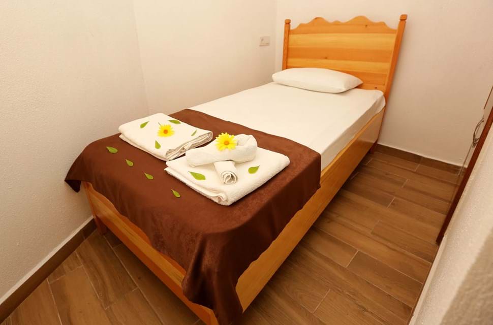 The lower floor rooms have a double bed on the front side and a single bed in a separate room on the back side.
